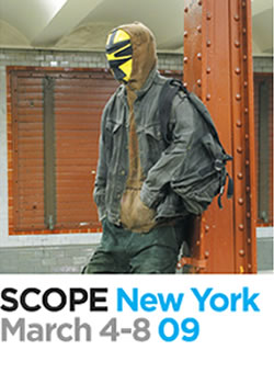 | Building on Miami's overwhelming success, SCOPE launches its 2009 season with its flagship fair, SCOPE New York 09. SNY09, an invitation only edition of SCOPE art fairs, proudly returns to Manhattan's most famous cultural icon, Lincoln Center, with a glass facade pavilion situated in Lincoln Center's Damrosch Park, at the corner of 62nd Street and 10th Avenue. SCOPE New York is just blocks from the Armory Show and serviced daily by VIP Zipcars, shuttles and pedicabs. Last year's fair featured galleries from four continents and 20 countries, including China, Mexico, Japan, Korea, Brazil, Italy, France, Belgium, the Netherlands, Norway, Switzerland, Germany, UK, Spain, and Canada. SCOPE New York 2009's 50 invitees will uphold its unique tradition of solo and thematic group shows presented alongside museum-quality programming, collector tours, screenings, and special events. The fair opens to Press, SCOPE and Armory VIPs on Wednesday, March 3, 3-9pm with the FirstView benefit, a $100 charitable donation for all non-VIP cardholders. Introducing artists, curators, and cutting-edge galleries to new audiences internationally has made SCOPE the most comprehensive destination for the emerging art world available anywhere. With art fairs in Miami, Basel, New York, London, and the Hamptons, SCOPE is proud to be an influential presence in the expanding global art market. | ||