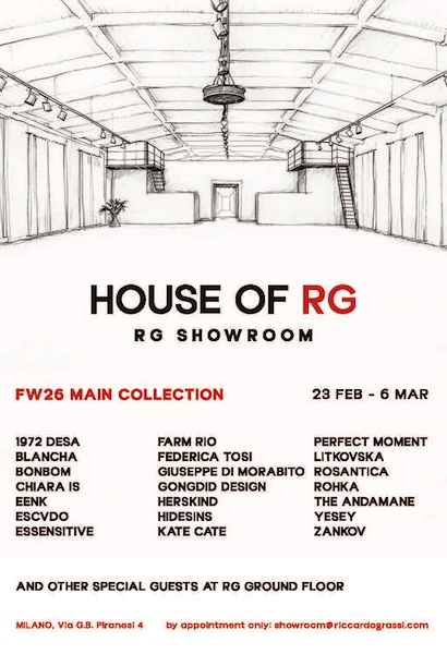 Brands RTW: Aodress, Apuntob, Avenue Montaigne, Bokja, ES2AY, F Cashmere, Gilda Midani, Kristensen du Nord, Molliolli, N_8Milano, Roberto Collina, Samantha Sung, Shaft Jeans, Sosue, Stella Jean.