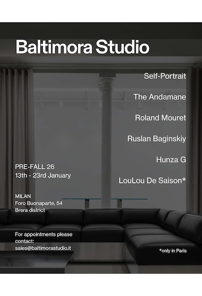 Brands: Alessandro Enriquez, Allude, Arma, Balossa, Baum Und Pferdgarten, Berwich, Bruno Manetti, Crida, Desantis by Alvarez, Elise Gug, Her Shirt, Kujten, L’agence, Mouche, Opificio, Psophia, Stand Studio, Valentini, Vanessa Baroni, Windsor.