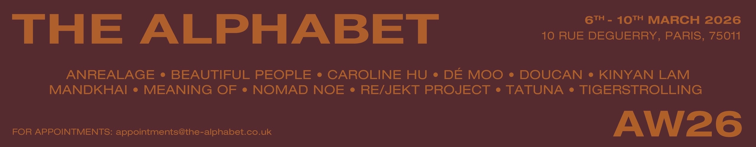 Brands: Allude, Anna October, Anne-Mi, Beaufille, Charoux, Nour Hammour, Source Unknown + Guest Brands: A.L.C., Anna Quan, Article Ten, Aureliana, Drejani, Manurí, SAGIO