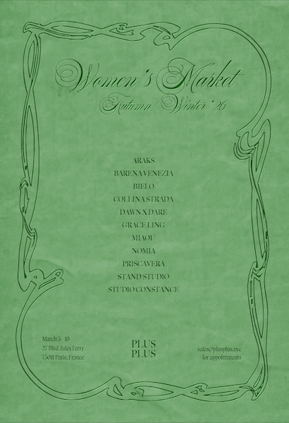 Brands:Araks, Barena Venezia, Bibelo, Collina Strada, Dawn x Dare, Grace Ling, Miaou, Nomia, Priscavera, Stand Studio, Studio Constance