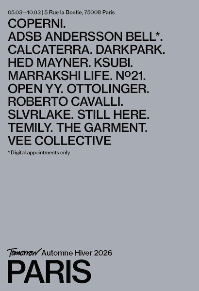 Brands: Faliero Sarti, Forte Forte, Jimmy Fairly, Labo Art, Leret Leret, Mii, Roberto Collina, Roseanna, Stouls, Sunshine+Cloud, The Label Edition.