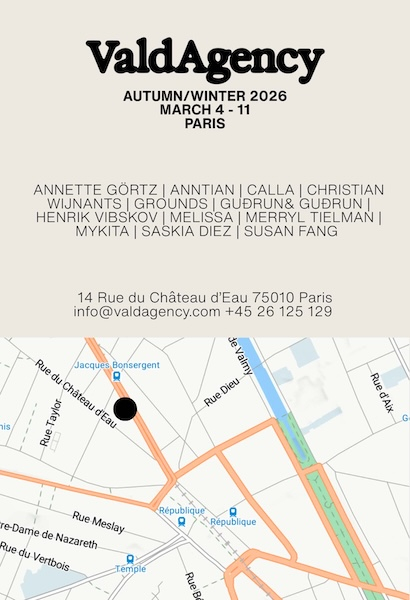 Brands: Annette Görtz, Anntian, Calla, Christian Wijnants, Grounds, Gudrun & Gudrun, Henrik Vibskov, Melissa, Merry Tielman, Mykita, Saskia Diez, Susan Fang.