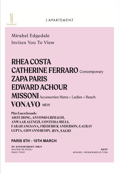 Brands: Rhea Costa, Fall93, Catherine Ferraro, Missoni Accessories, Edward Achour, Zapa Paris.