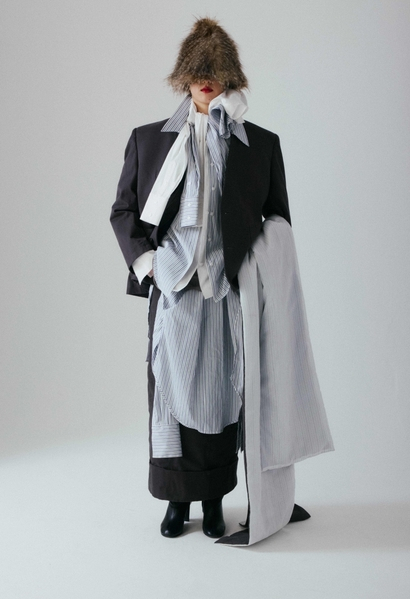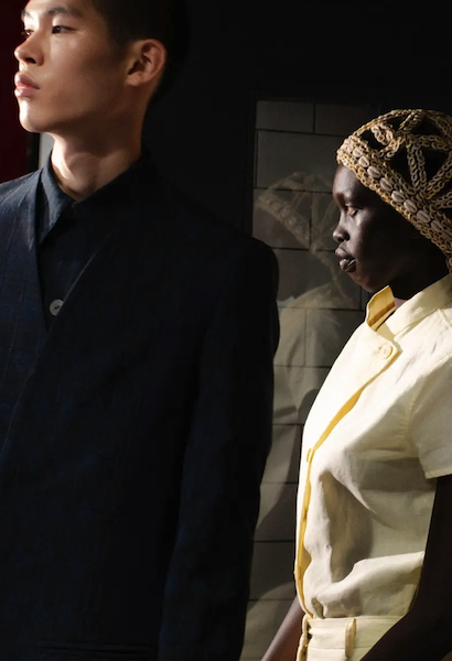 Aaron Esh is a London-based ready-to-wear designer offering a distinct lens on the city’s culture of style. A graduate of Central Saint Martins and finalist in the 2023 LVMH Prize, his label was initially established as a menswear line with the aim of infusing the rigour of Savile Row tailoring with the spirit of British subculture, quickly growing to encompass a multiplicity of perspectives, genderless in practice and worldly in its appeal. The early impulses of his label remain steadfast: clothes that combine establishment rigour with the rebellious spirit of youth culture, devotedly crafted for a generation who feels somewhere in-between.