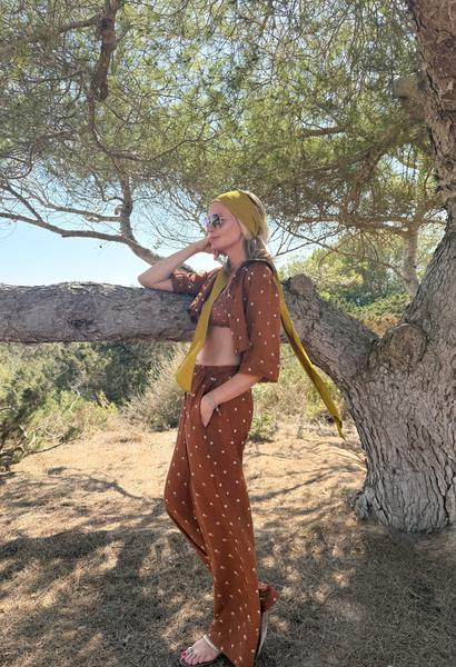Ancient Kallos, draws its creative inspiration from ancient Greek beauty, its very name deriving from the ancient Greek word for beauty, Κallos. Inspired by Greek mythology and traditional embroideries, which have a history of over 100 years. Their emphasis on handcrafted excellence ensures meticulous craftsmanship. As a sustainable brand, Ancient Kallos carefull selecting high-quality natural fabrics that meet at sustainability standards. Established in 1982, the family company boasts over 40 years of industry experience. The Brand embodies heritage meeting innovation, led by sisters Labrini and Stella Stavrou, who took the reins of their family’s 30-year-old clothing business a decade ago.