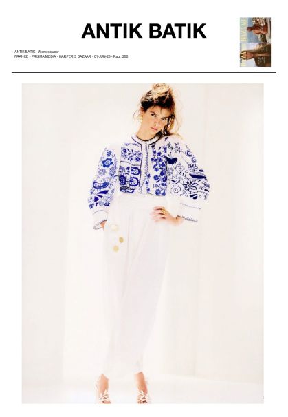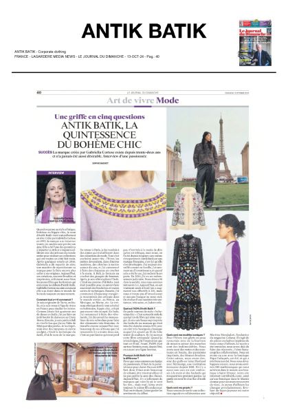 Paris, New York, Milan and Shanghai PARIS September 01 - October 07, 2025 19 Rue des Minimes - 75003 + NEW YORK September 08 - 18, 2025 Showroom: Paper Mache Tiger + MILAN September 22 - Octobre 07, 2025 Showroom: Marziano Bello + SHANGHAI October 08 - 14, 2025 Showroom: The Cool Hunter Antik Batik is a French designer brand founded in 1992 by Gabriella Cortese, a passionate traveler. Gabriella has been creating clothes that bear her soul, while highlighting the millennia-rich expertise of the artisans she meets through her travels. Through the years, she multiplied collaborations with artisans in India, Bali, and Peru, making Antik Batik an authentic and ethical brand. Benefiting from a strong identity, Antik Batik is today associated with a Bohemian and sophisticated art of living.