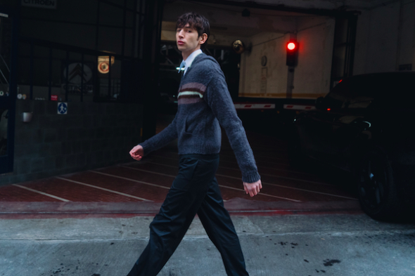 Named after a five-person indie/punk rock band, the collection translates their collective identity into clothing. Nothing Serious explores a shared wardrobe of Polly, Kim, Cameron, Lou, and Chlo, pieces that move between band members, shaped by creative exchange, proximity, and movement. Garments are styled, layered, and reinterpreted across looks, forming a visual language that feels lived-in rather than fixed. Clothing becomes common ground: worn differently, exchanged freely, and defined by the dynamics of a group that dresses together. The collection is shaped by material contrast and construction. Experimental brushed mohair knitwear, developed through custom stitch structures, is combined with silk, jersey, and deadstock leather. Stripes, smagliature, and distressed stitch details appear throughout, bringing depth and variation across the wardrobe. Each piece is made and sourced in Italy, produced with specialised laboratories, with a focus on precision and material quality.