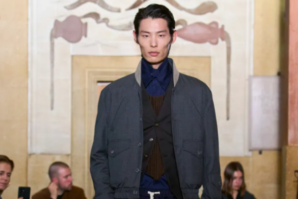 Magliano, winner of the 2023 Karl Lagerfeld prize, is an Italian fashion brand founded in 2017 by Luca Magliano in Bologna, the perpetual home of the Italian underground. Heavily inspired by quintessentially Italian subcultures and movements, Magliano imbues menswear fundamentals such as the suit, gilet, and shirt with a dark, offbeat, and dishevelled attitude. The FW26 collection, titled “Fundlugged,” showcased provincial elegance, emphasizing a relaxed, tailored, classic wardrobe, reworked with a simple, precise, and deliberately restless language.