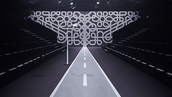 During Paris Fashion Week, this know-how took the shape of a grey set design with the feature of a Gordian knot of circling and intersecting roads. This stage was produced for Viktor & Rolf’s latest AW 14 RTW “Highway to Hell” Collection that was based on “50 shades of grey colour palette” according to Jessica Michault, Editor-in-Chief at Nowfashion.