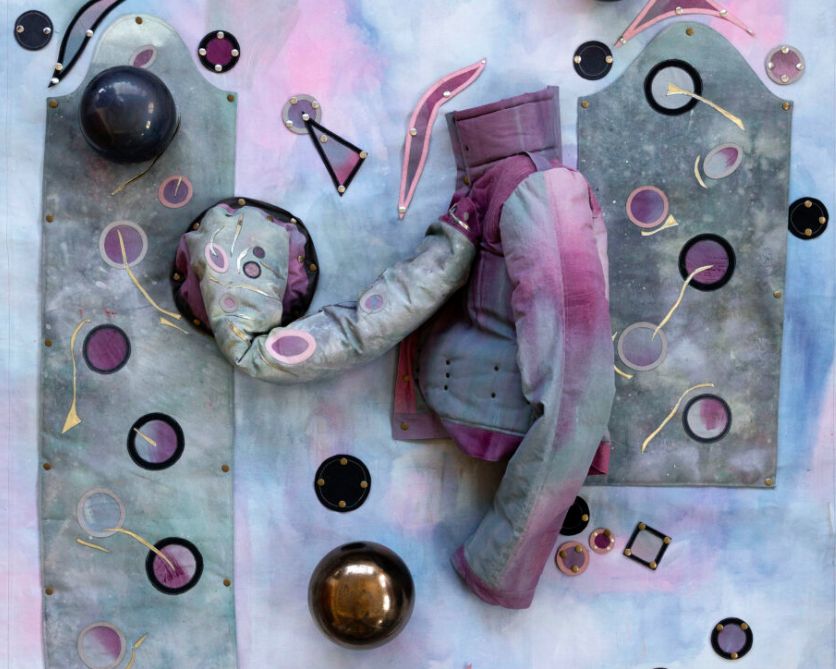 The Frac Île-de-France will be hosting Mathilde Denize’s first solo exhibition at an institution in the Paris region, for which she will be taking over Le Plateau. Denize’s artistic practice combines painting and sculpture, which she considers inseparable, with installation, video, and performance. She has developed a unique body of work in which forms are born of assembly, transformation, and recycling. Her paintings, which often resemble garments or costumes, are both pictorial surfaces and portable objects, existing on the border between painting, volume, and scenography.