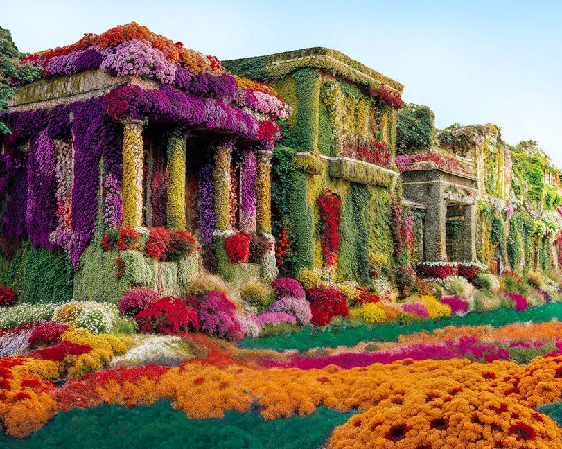 The Paradise series extends this dialogue by incorporating AI-generated imagery. Here, Peters constructs visionary gardens and architectural forms inspired by religious and cultural notions of paradise. These evocative compositions tap into universal human yearnings for peace, harmony, and bliss, while simultaneously raising questions about the desirability and implications of a digitally perfected utopia.