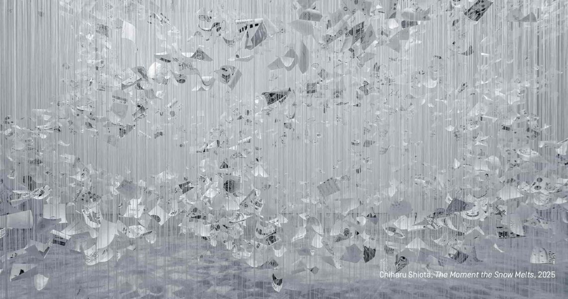Shiota’s suspended snowfall offers a place for meditation, evoking what she describes as “the final moments of something coming to an end; the last echo.” Snow becomes a metaphor for human relationships – their fragile beginnings and inevitable fading – while the written names affirm that loss does not erase memory, and that, with time, renewal always follows.